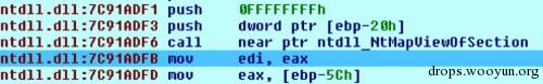 ntdll.dll:7C91ADF6 call near ptr ntdll_NtMapViewOfSection