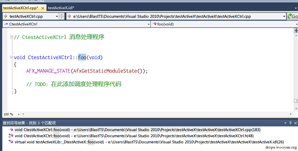 这时VS会在多个地方添加这个函数的信息,不过简单起见,回到刚才的idl文件中我们就可以看到添加了个新函数