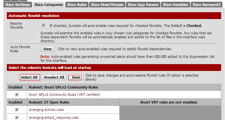 设置后选保存,然后重启Suricata生效。