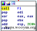 其解码方式很简单,只是把读取到的文件内容逐字节的与0x56做异或运算。解码之后,成为包含可执行指令的程序段: